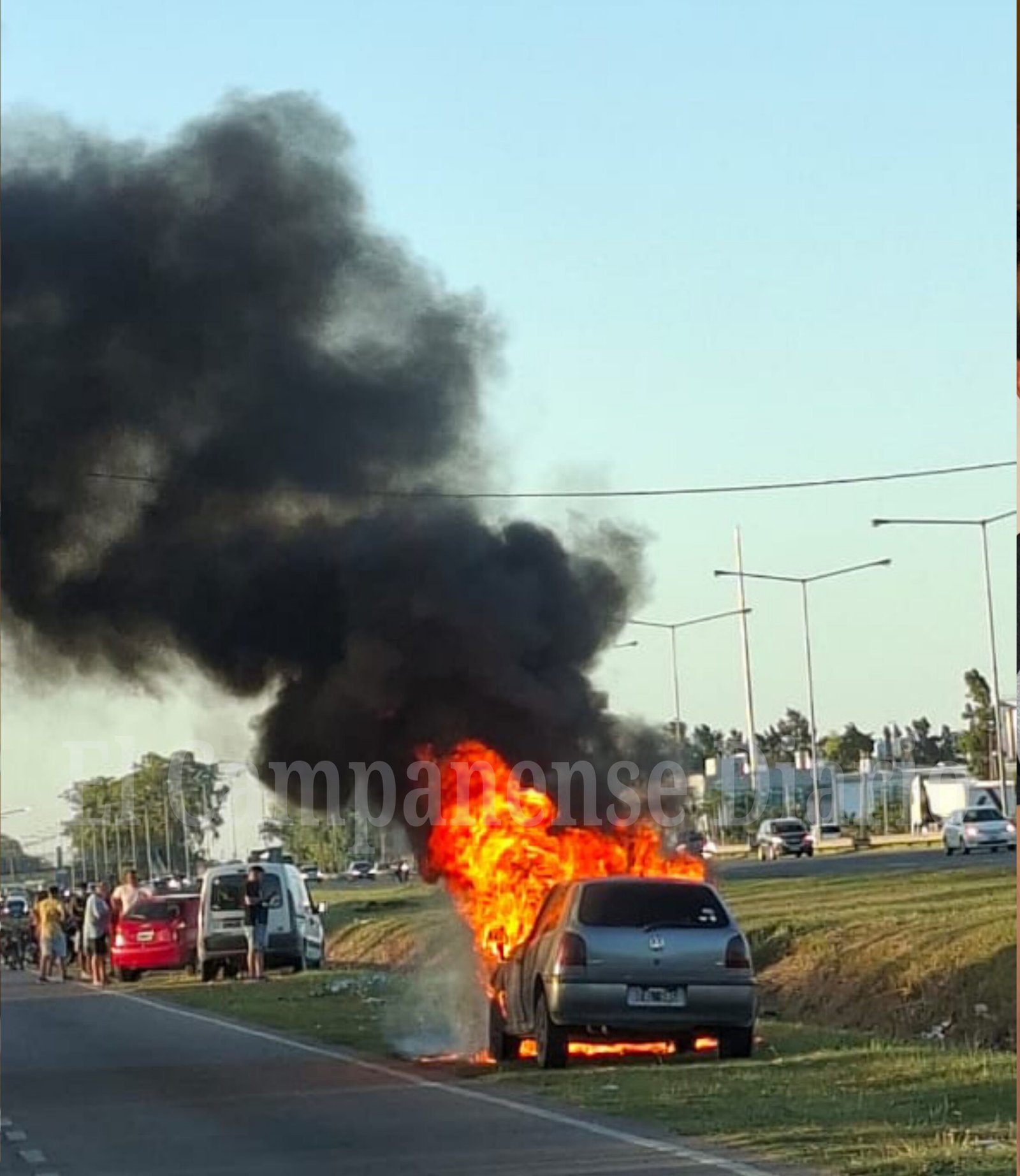 Un automóvil Volkswagen Gol fue consumido por las llamas en un hecho ocurrido este domingo minutos después de las 19 sobre Colectora Sur a metros del barrio Las Campanas.