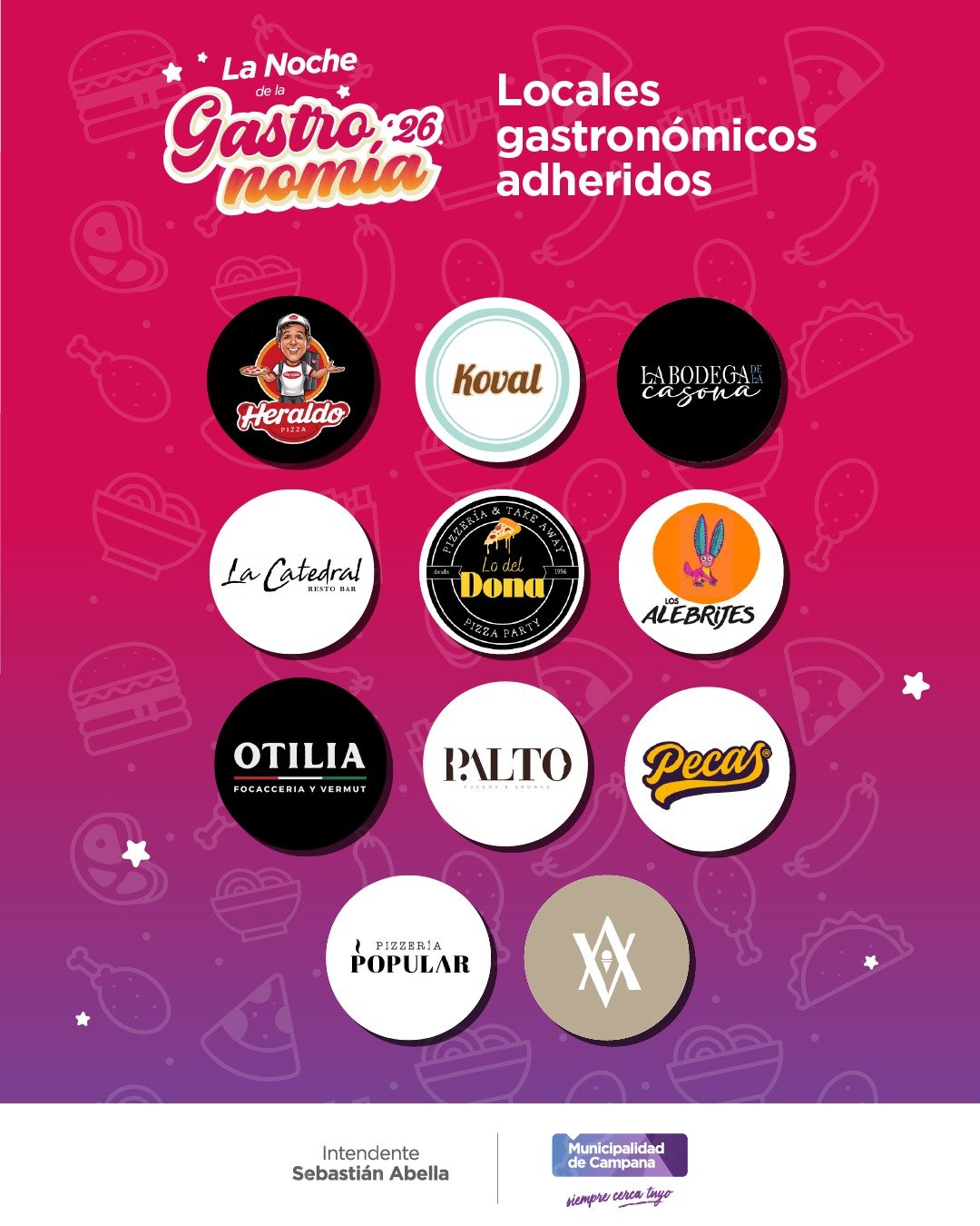 En esta ocasión, los locales adheridos son: Koval Heladería & Café; Estación Natural; Lo del Dona; La Bodega de la Casona; Antares Campana; Anik Campana; Heraldo Pizza; La Catedral – Resto Bar; Chicago hot dogs; Emblema; Boulevard Deli&Café; Pecas Burger; Estilo Nápoles; VIVALENTI; Los Alebrijes; Blood Benz; Heladería Ariel, Otilia, Baum, Diner Bro´s, Palto y Pizzería Popular.