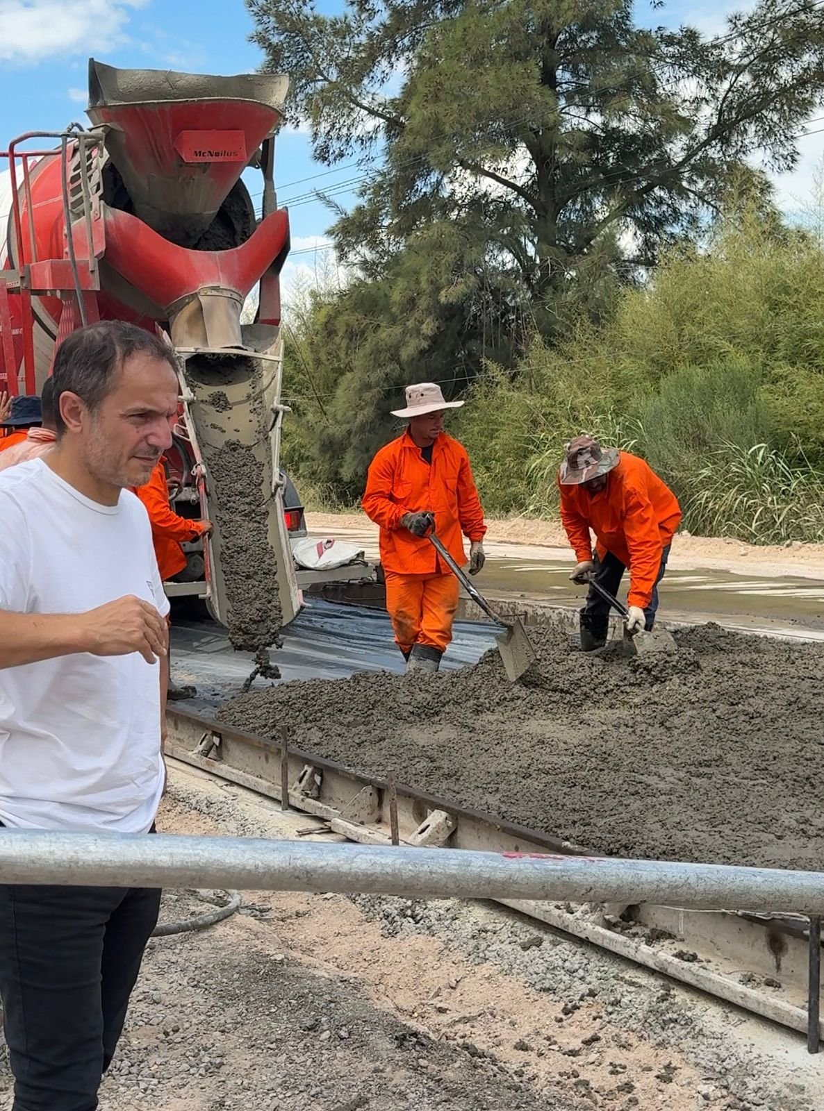 “Estamos transformando este sector de la ciudad y saldando una deuda histórica con los vecinos del corredor con una reconstrucción completa como corresponde”, indicó el jefe comunal en su recorrida por el lugar mientras las máquinas colocaban el hormigón rico sobre la calzada.