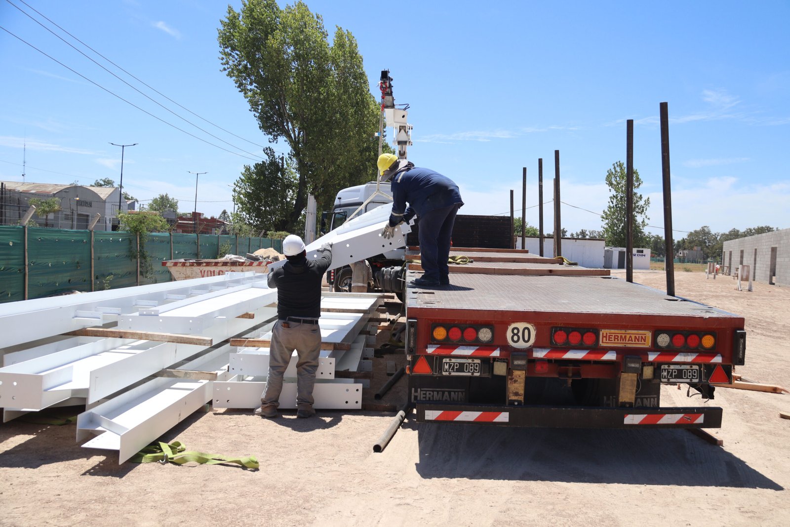 Durante la semana llegaron al predio de Av. 6 de Julio y Viola las columnas y vigas metálicas que conformarán la nave principal de este espacio proyectado por la gestión del intendente Abella para el desarrollo del deporte, la cultura y la recreación en la ciudad.