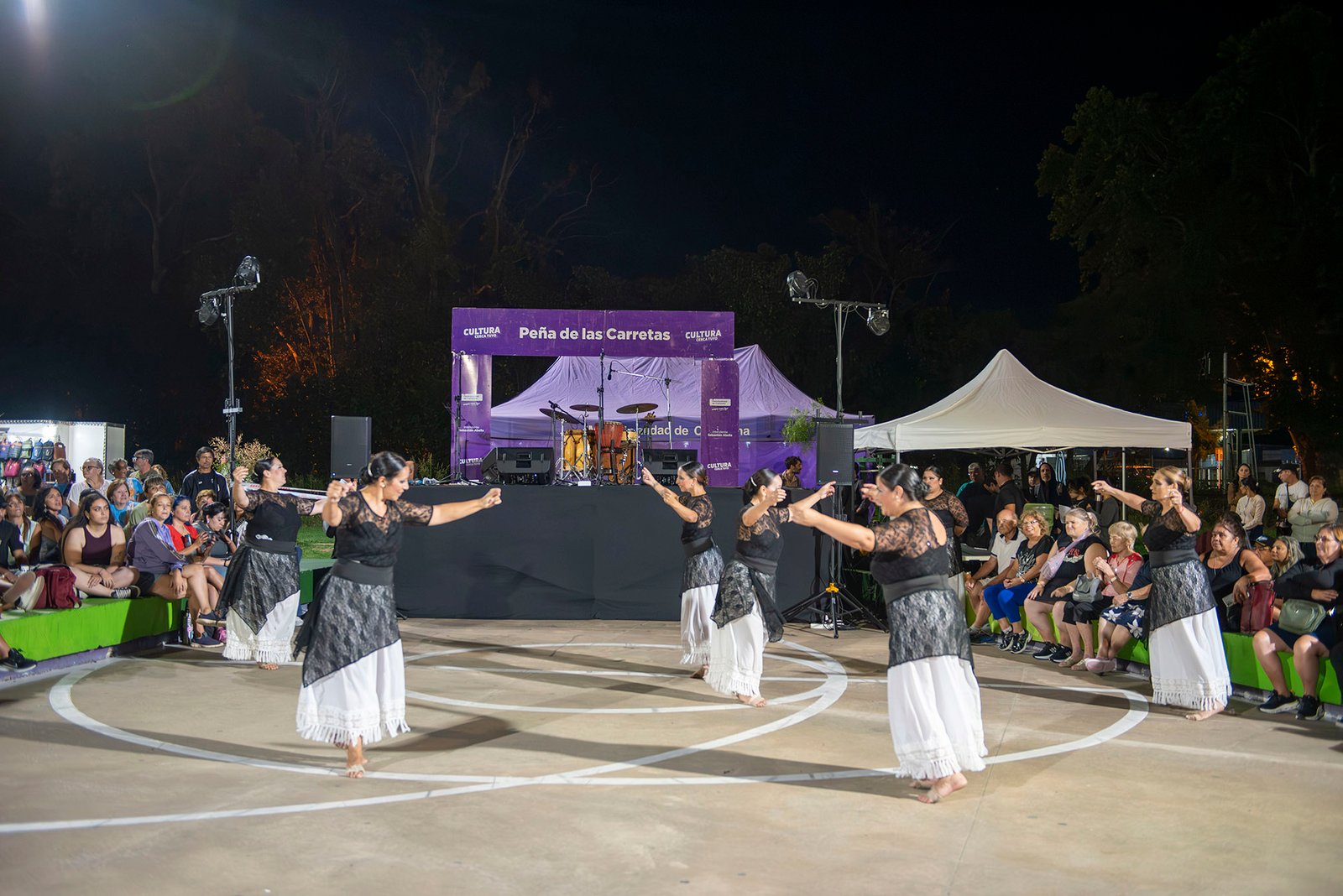 La propuesta se completó con una clase abierta de folklore a cargo del profesor Nahuel Moreyra, que invitó a los vecinos a sumarse a la pista, y con un patio gastronómico y feria de artesanos.