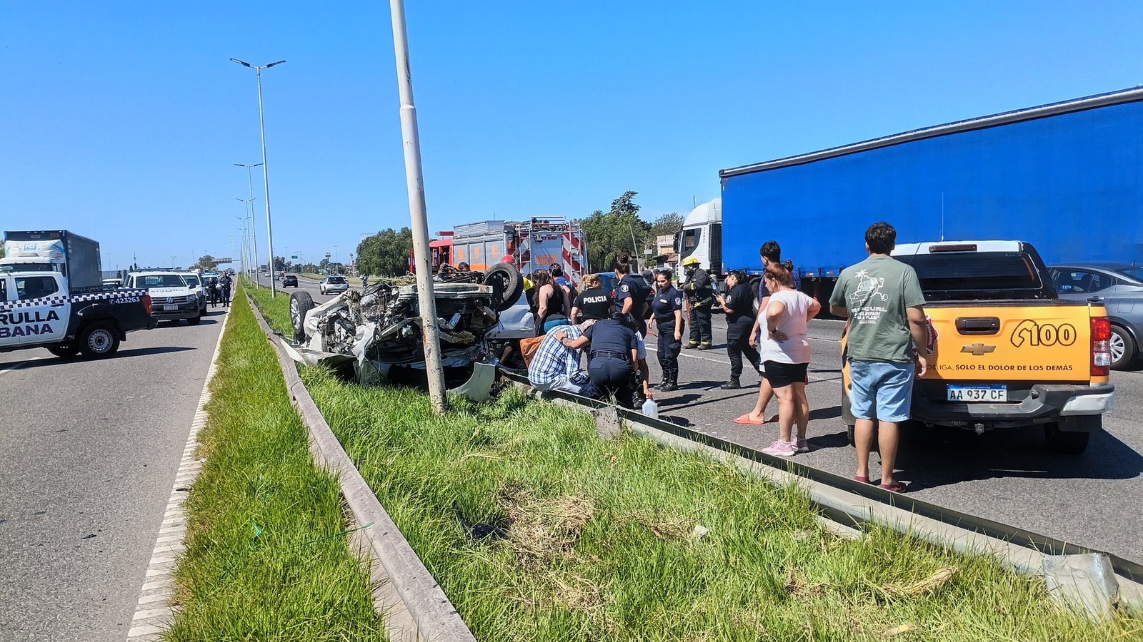 El vehículo dió varios trompos antes de terminar incrustado sobre el gusrdarrail que divide ambas manos de la autopista.