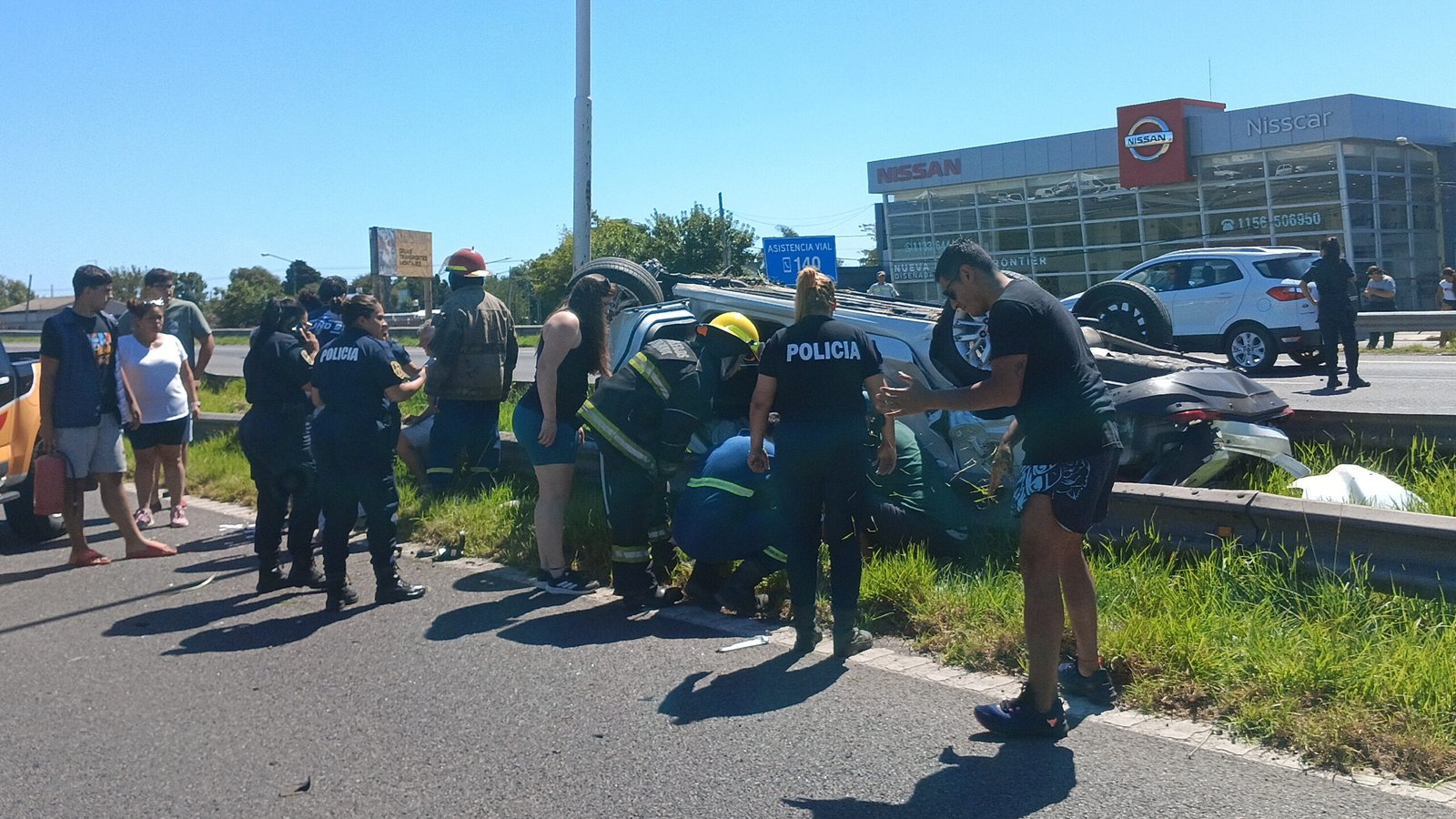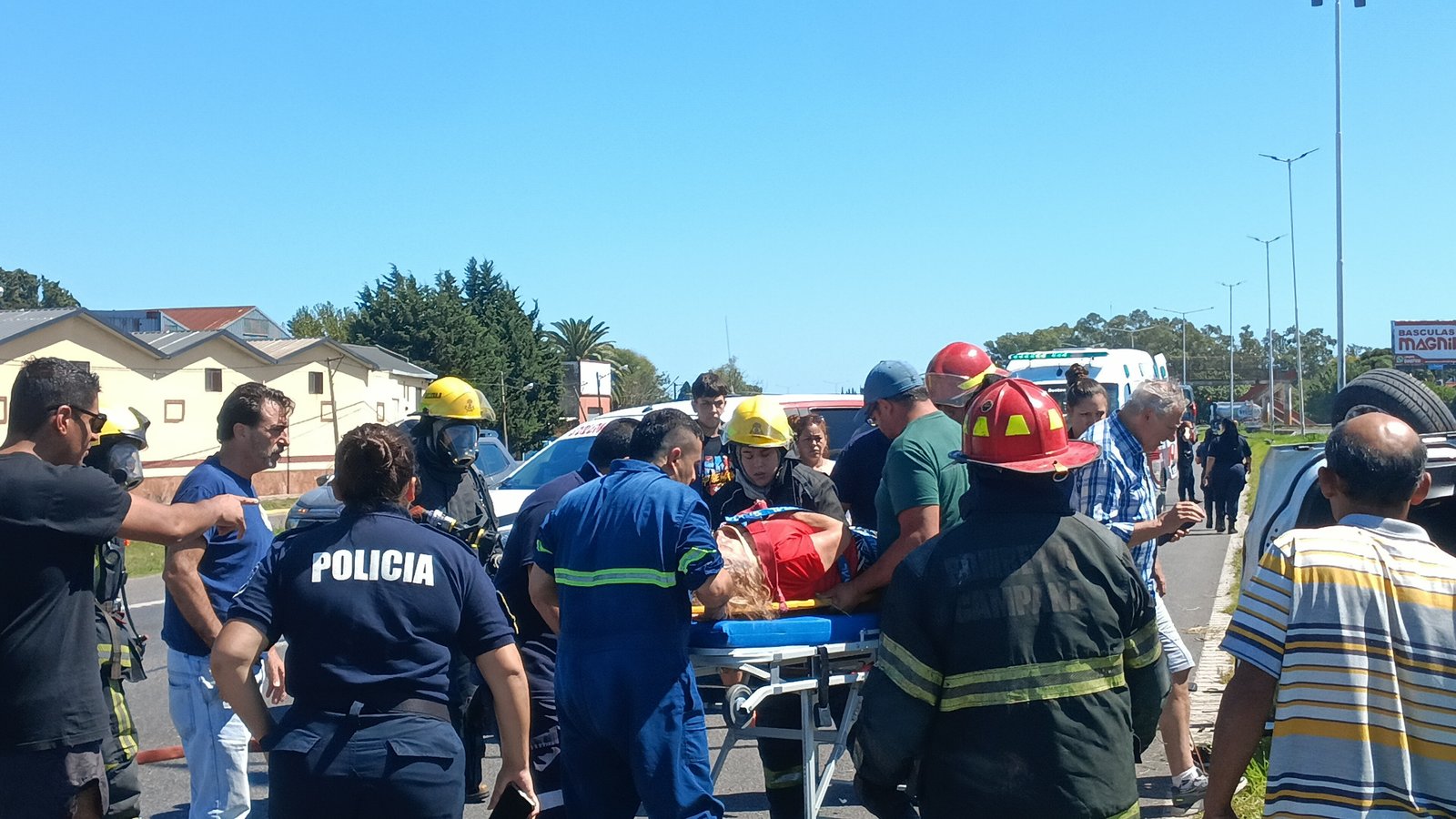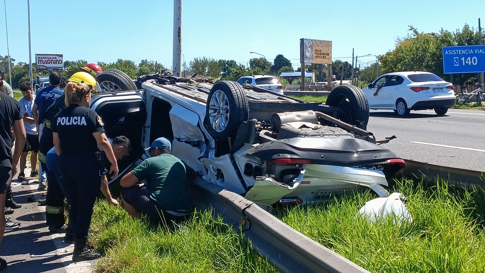 Los dos ocupantes del vehículo, un matrimonio de personas mayores, resultaron heridos con golpes y cortes, pero pudieron ser retirados del automóvil conscientes.Personal de SAME, Bomberos y Comando Patrulla trabajaron en el lugar.