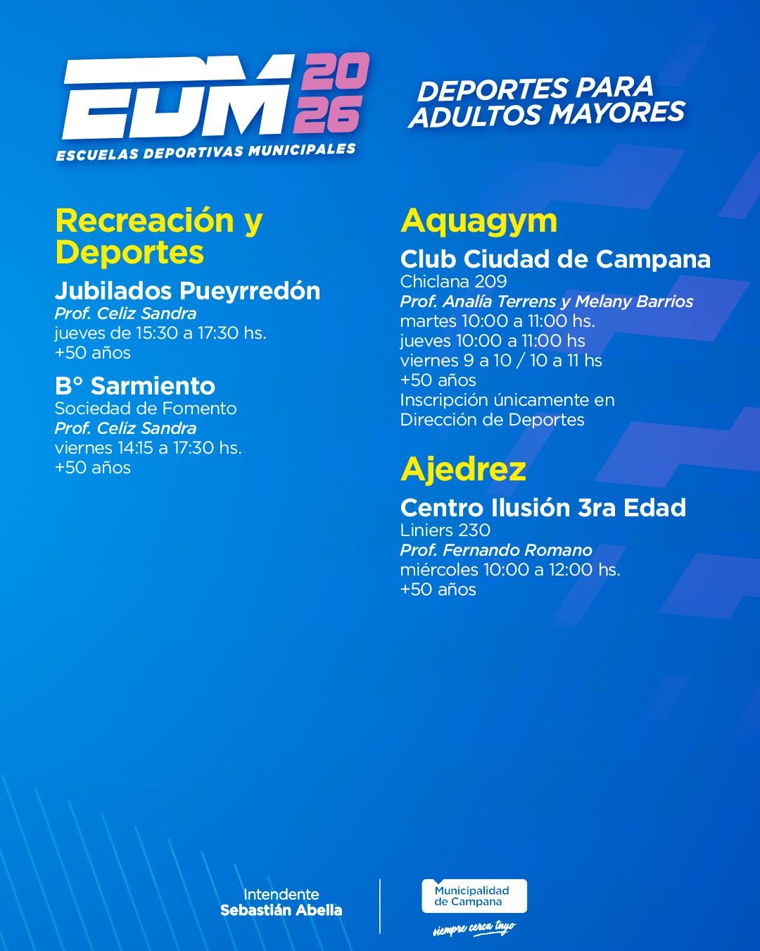 • Club Ciudad de Campana (Chiclana 209, centro): martes y jueves 9 a 10 horas. Edad: + 10 años.