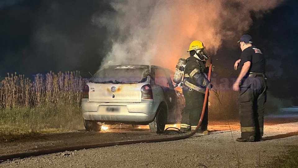 Un automóvil Volkswagen Gol se incendió esta noche sobre Ruta 6, a la altura de la planta Valot.