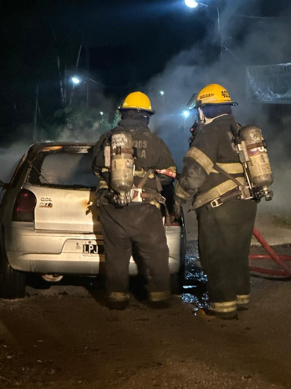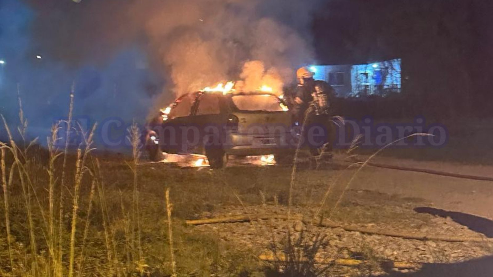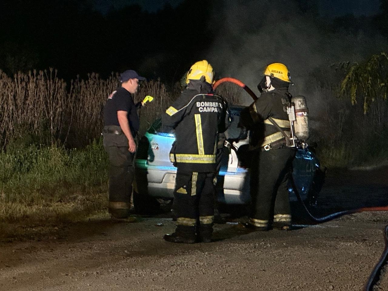 Un automóvil Volkswagen Gol se incendió esta noche sobre Ruta 6, a la altura de la planta Valot.