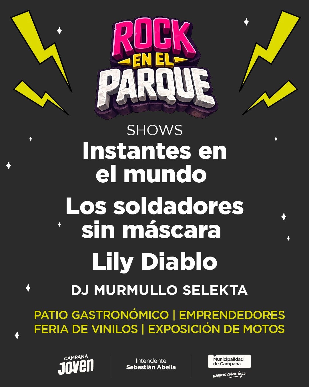 El primer concierto del año reunirá tres bandas locales: Instantes en el Mundo, Los Soldadores sin Máscaras y Lily Diablo. También acompañará la jornada con una selección musical preparada para la ocasión el DJ Murmullo Selecta.
