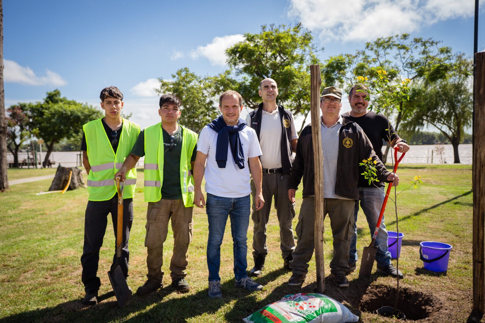 El intendente Sebastián Abella participó este viernes de una jornada de plantación de árboles nativos en la Costanera impulsada por el Parque Nacional Ciervo de los Pantanos.