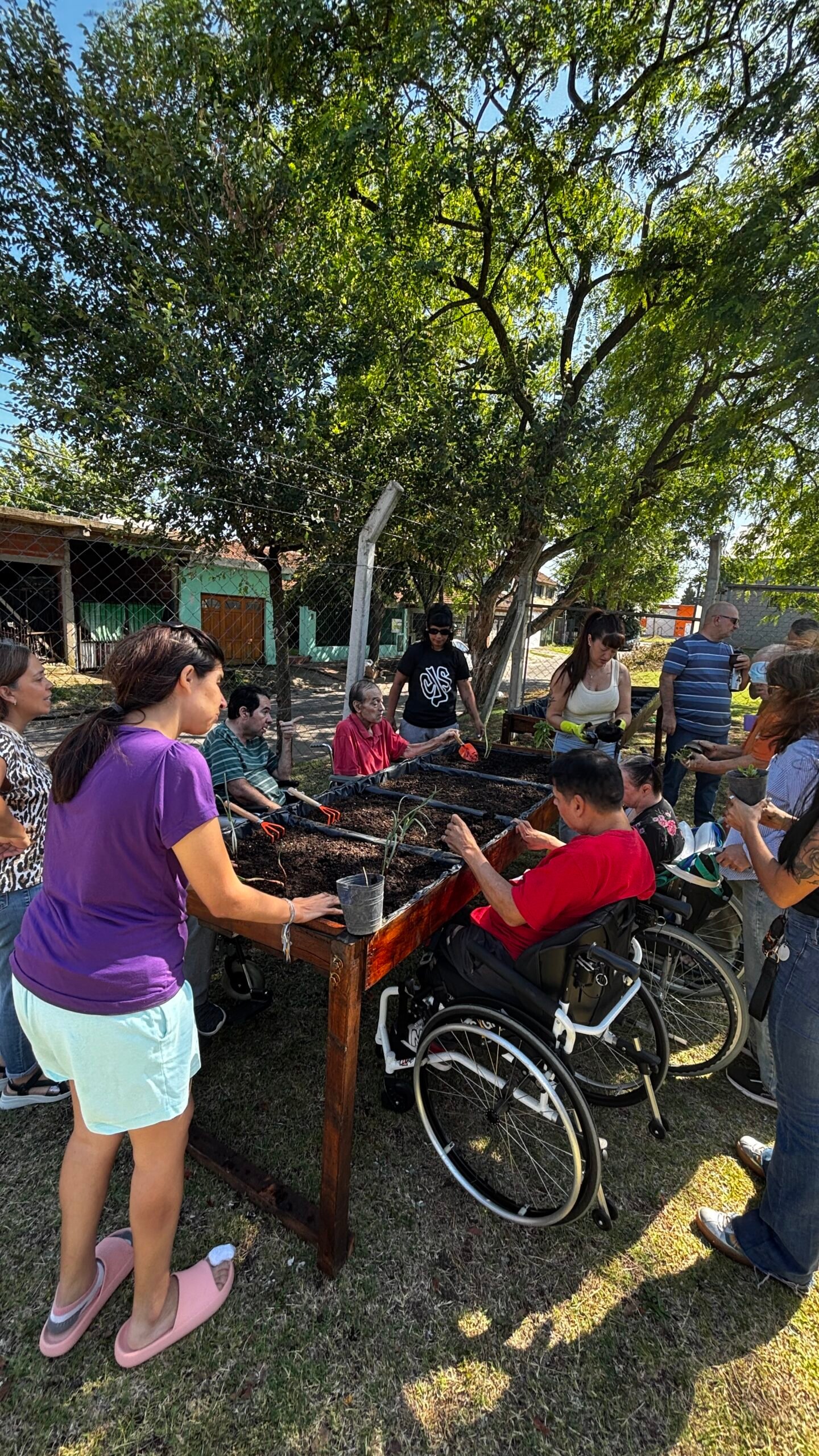 En distintas visitas, los miembros de la agrupación entregaron los huerteros con tierra y plantas de hortalizas, con el objetivo de que los residentes puedan desarrollar actividades vinculadas al cuidado de la huerta y mantener un contacto directo con la tierra, promoviendo así espacios de recreación y bienestar.