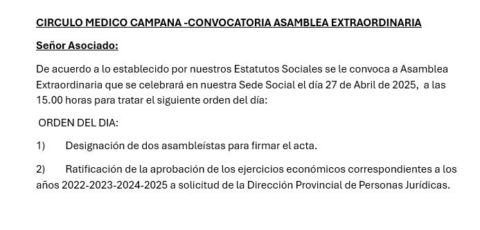 Círculo Médico Campana – Convocatoria a Asamblea extraordinaria a. ultimas noticias Convocatoria/edictos 26 de marzo de 2026mariano