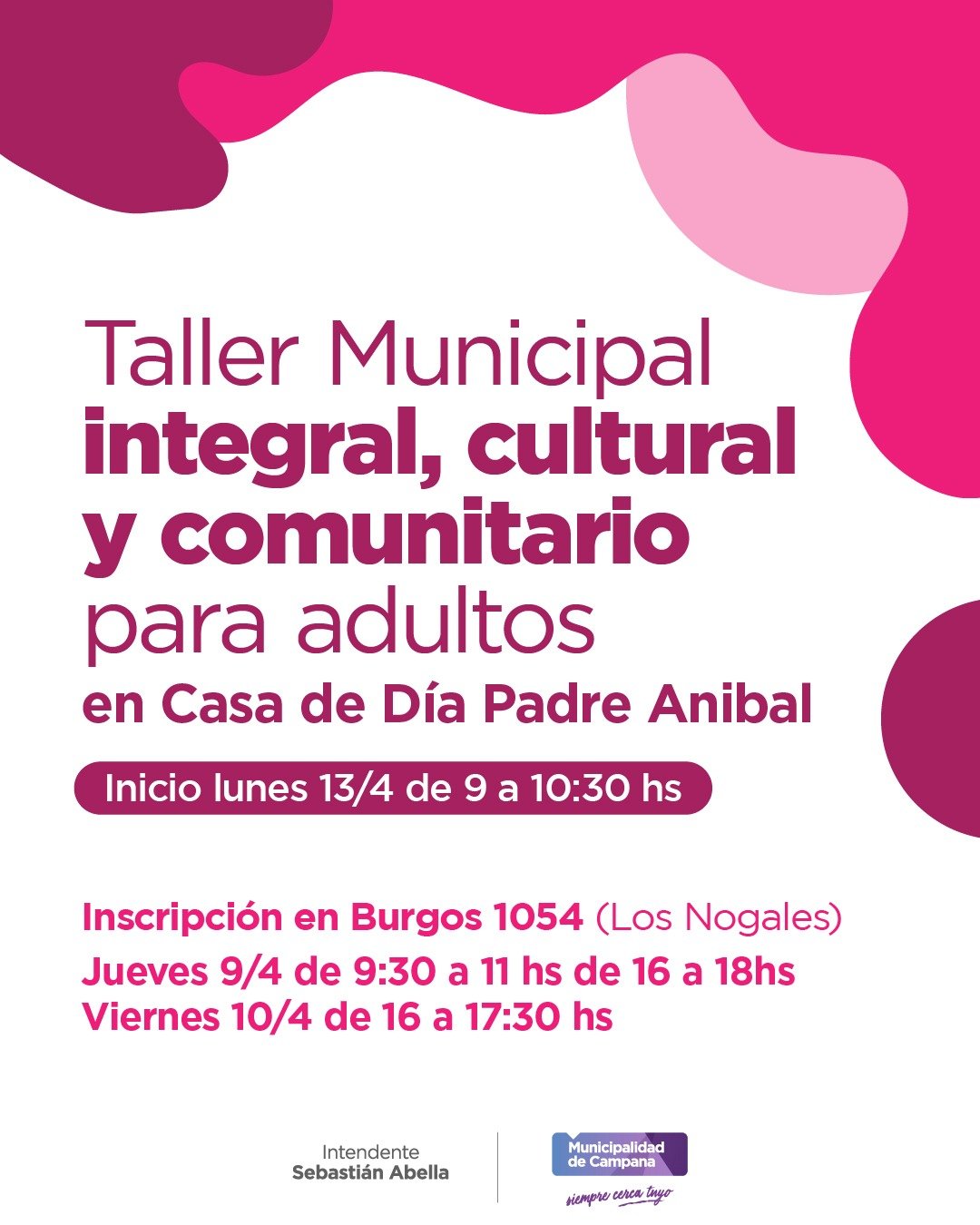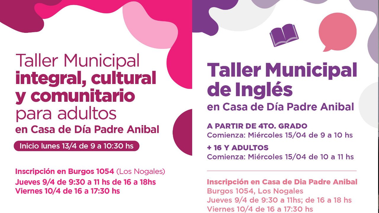 La Secretaría de Inclusión, Educación y Cultura del Municipio suma dos nuevos talleres gratuitos abiertos a la comunidad que se dictarán en la Casa de Día “Padre Aníbal” (Burgos 1054, barrio Los Nogales).