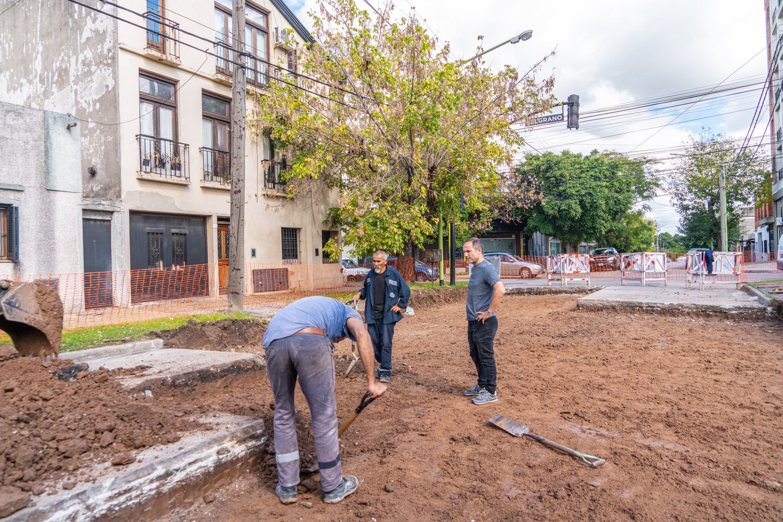 El Plan actualmente se ejecuta sobre la calle Estrada, a la altura de su intersección con Belgrano, donde la calzada presentaba un importante desnivel.