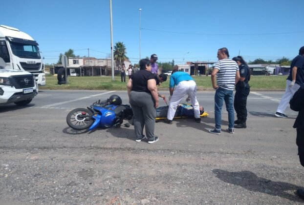 Accidente en ruta 6: reventó el neumático y cayó de su moto