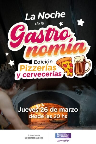 Dedicada especialmente a cervecerías y pizzerías, los vecinos podrán disfrutar de promociones y descuentos en locales adheridos el jueves 26 de marzo. Este jueves 26 de marzo, la ciudad vivirá una nueva edición de La Noche de la Gastronomía, esta vez dedicada especialmente a las cervecerías y pizzerías locales, con la participación de 13 comercios […]