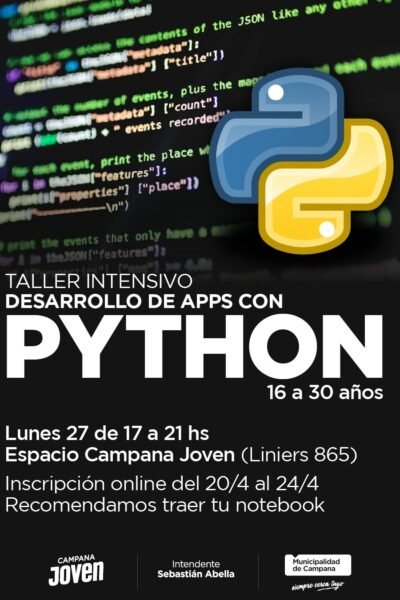 La propuesta gratuita está orientada a la introducción al desarrollo de aplicaciones con Python y está destinada a jóvenes de 16 a 30 años. Se dictará el lunes 27 y tendrá una duración de 4 horas. Se requiere inscripción previa. Campana Joven impulsa una nueva propuesta de formación gratuita con el lanzamiento de un taller […]