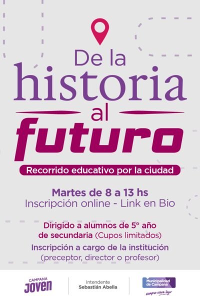 La propuesta organizada por Campana Joven del Municipio está destinada a estudiantes de 5° año del nivel secundario. La inscripción es online. El Municipio, a través de Campana Joven, lanza la propuesta “De la historia al futuro”: una iniciativa destinada a estudiantes de 5° año del nivel secundario que invita a los cursos a participar […]